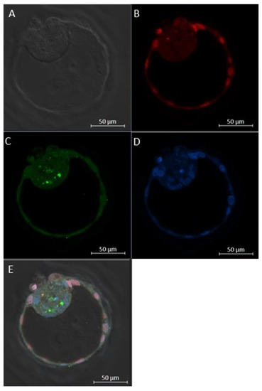 - Leidenfrost, S.; Boelhauve, M.; Reichenbach, M.; Güngör, T.; Reichenbach, H.D.; Sinowatz, F.; Wolf, E.; Habermann, F.A. Cell Arrest and Cell Death in Mammalian Preimplantation Development: Lessons from the Bovine Model. PLoS ONE 2011, 6, e22121. [Google Scholar]