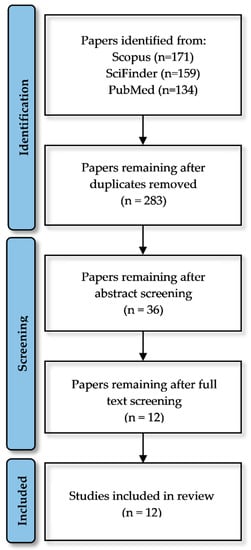 The sources for performing the literature review were Scopus [], PubMed [], SciFinder [], and Google Scholar []. These databases were selected because they contain an abundance of publications and peer-reviewed papers. The search on these databases was completed in April 2022. The terms that were used to search abstracts, titles, and keywords of papers were:
