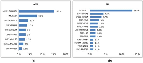 PFGs with the incidence higher than 1% in AML (a) and ALL (b) [56].
