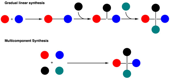 MCRs are also gaining great interest because they are generally eco-friendly and sustainable transformations [8]. Indeed, MCRs have strategic advantages over linear synthesis, being particularly appreciated by its superior atom and bond economies, its cost- and time-effective balance, and its highly exploratory nature.