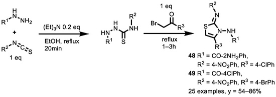 Even though the classical IMCRs are not suited for generating heterocyclic compounds, new variations of the Passerini three-component reaction [48,57], Ugi three- and four-component reaction (U-4CR) [58,59], van Leusen reaction [60] and Groebke–Blackburn–Bienaymé reaction (GBBR) [61,62,63,64] have been explored and, indeed, IMCRs are leading today’s MCR chemistry [65]. For further information on isocyanide chemistry, the reader is directed toward further comprehensive review articles from Prof. Heravi’s group [66,67,68,69,70], Prof. Dömling’s group [71,72,73,74,75,76,77,78,79,80,81,82] and other extensive publications [83,84,85,86,87,88,89,90,91,92,93,94,95].