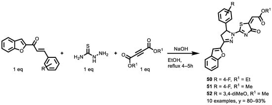 - Heravi, M.M.; Zadsirjan, V.; Dehghani, M.; Ahmadi, T. Towards Click Chemistry: Multicomponent Reactions via Combinations of Name Reactions. Tetrahedron 2018, 74, 3391–3457. [Google Scholar] [CrossRef]
