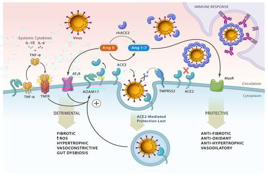 - Gheblawi, M.; Wang, K.; Viveiros, A.; Nguyen, Q.; Zhong, J.-C.; Turner, A.J.; Raizada, M.K.; Grant, M.B.; Oudit, G.Y. Angiotensin-Converting Enzyme 2: SARS-CoV-2 Receptor and Regulator of the Renin-Angiotensin System. Circ. Res. 2020, 126, 1456–1474. [Google Scholar] [CrossRef]