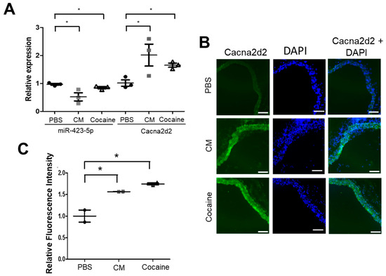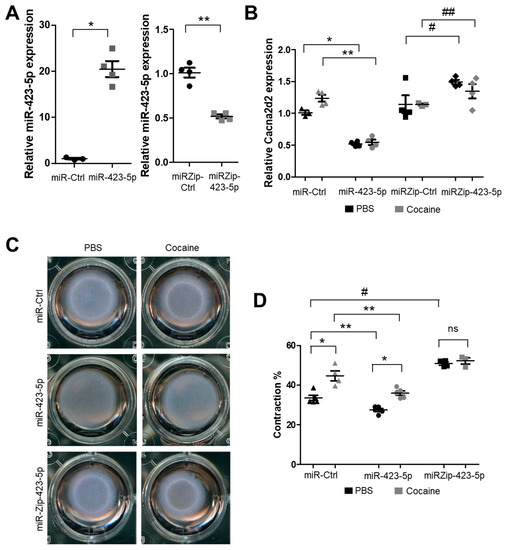 APA StyleDykxhoorn, D. M., Wang, H., Da Fonseca Ferreira, A., Wei, J., & Dong, C. (2023). MicroRNA-423-5p Mediates Cocaine-Induced Smooth Muscle Cell Contraction by Targeting Cacna2d2. International Journal of Molecular Sciences, 24(7), 6584. https://doi.org/10.3390/ijms24076584