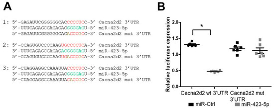 4.4. Site-Directed Mutagenesis in Cacna2d2 and Luciferase Reporter Assays