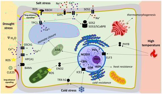 Abiotic stress signaling. Image represents novel mechanisms in abiotic stress signaling reviewed in corresponding sections.