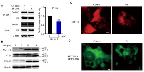 2.3. Compound 6d Initiates Autophagosome Formation by Disrupting the Interaction between Bcl-2 and Beclin 1