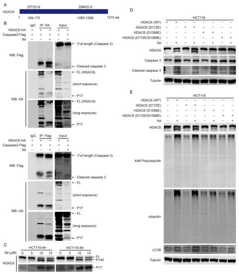 2.5. HDAC6 Serves as a Substrate of Caspase 3 and Compound 6d Specifically Induces HDAC6 Cleavage by Activating Caspase 3
