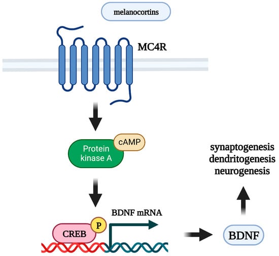 Mechanism of neurotrophic effects of melanocortins. MC4R: melanocortin 4 receptor; BDNF: brain-derived neurotrophic factor; cAMP: cyclic adenosine monophosphate; CREB: cAMP response element-binding protein.
