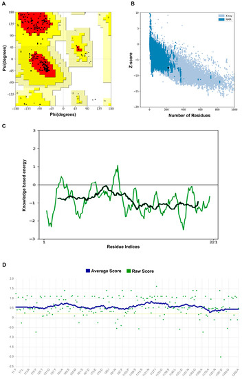 - Wiederstein, M.; Sippl, M.J. ProSA-Web: Interactive Web Service for the Recognition of Errors in Three-Dimensional Structures of Proteins. Nucleic Acids Res. 2007, 35, W407–W410. [Google Scholar] [CrossRef]