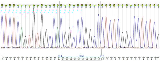 To perform whole-exome sequencing, the patient’s DNA was analyzed on a new generation NextSeq 2000 Sequencing System (Illumina Inc., San Diego, CA, USA) with an average coverage of ×73. Targeted enrichment using the Agilent Sure Select All Exon v8 kit (Agilent, Santa Clara, CA, USA) was used for sample preparation.