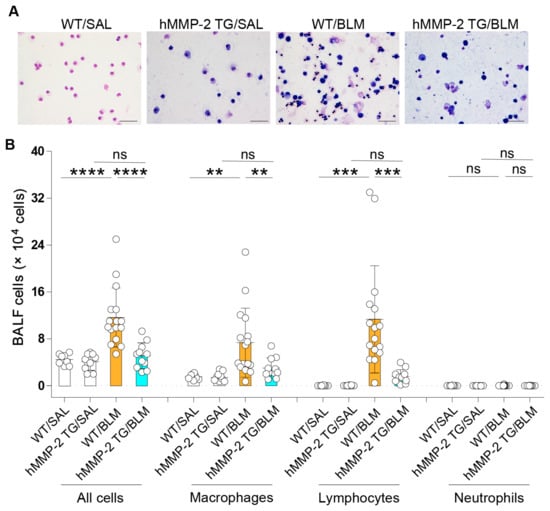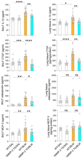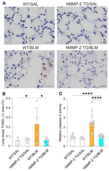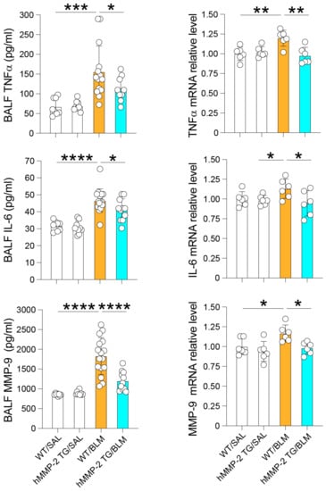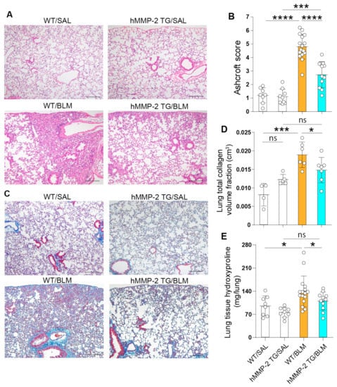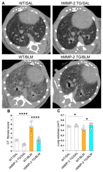 2.1. No Difference in Body Weight between WT and hMMP-2 TG Mice with Lung Fibrosis