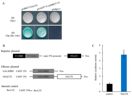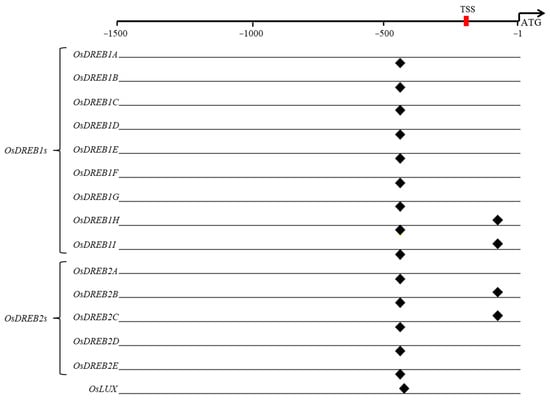 2.6. OsLUX May Act as a Downstream Gene of the DREB Pathway