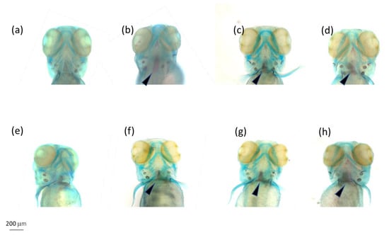 - Huang, W.; Wu, T.; Au, W.W.; Wu, K. Impact of Environmental Chemicals on Craniofacial Skeletal Development: Insights from Investigations Using Zebrafish Embryos. Environ. Pollut. 2021, 286, 117–541. [Google Scholar] [CrossRef]
