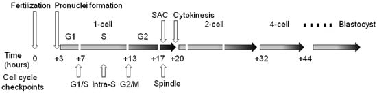 - Palmer, N.; Kaldis, P. Regulation of the embryonic cell cycle during mammalian preimplantation development. Curr. Top. Dev. Biol. 2016, 120, 2–53. [Google Scholar] [CrossRef]