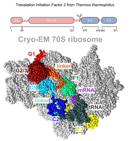 Figure 1) is among the largest nonribosomal GTPase involved in initiating protein biosynthesis in the cell. It belongs to the family of structurally related enzymes catalyzing GTP hydrolysis during the early processes of mRNA translation. IF2 plays a central role in translation initiation via the specific selection of fMet-tRNA