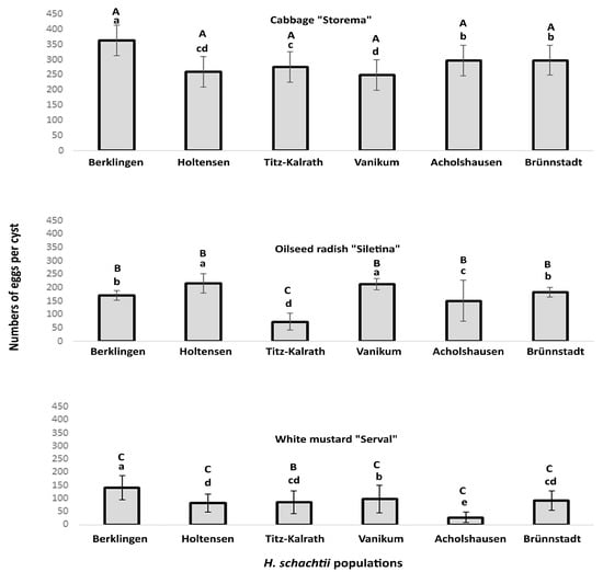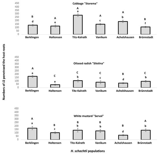 2.2. Penetration of H. schachtii Populations into the Roots of Three Cruciferous Species