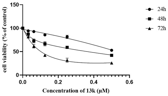 | 13k | H | ![]() | ![]() | 0.09 ± 0.01 | 0.18 ± 0.01 | 0.37 ± 0.08 | 0.19 ± 0.01 | 0.43 ± 0.04 |