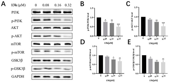 2.2.2. Compound 13k Inhibits PI3Kα and Blocks the PI3K Pathway in HCC827 Cells