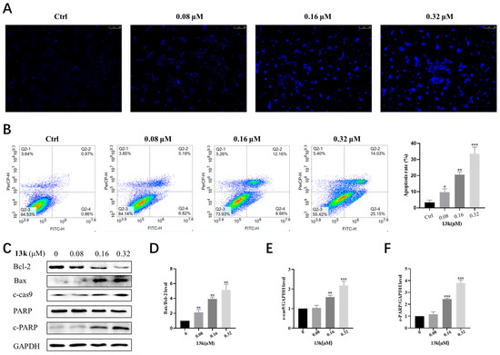 2.2.5. Compound 13k Induced Cell Apoptosis