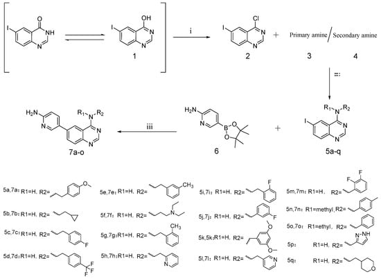 - Zhou, Z.; He, J.; Yang, F.; Pan, Q.; Yang, Z.; Zheng, P.; Xu, S.; Zhu, W. Design, synthesis and evaluation of anti-proliferative activity of 2-aryl-4-aminoquinazoline derivatives as EGFR inhibitors. Bioorg. Chem. 2021, 112, 104848. [Google Scholar] [CrossRef]