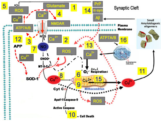 - Peters, C.; Munoz, B.; Sepulveda, F.J.; Urrutia, J.; Quiroz, M.; Luza, S.; De Ferrari, G.V.; Aguayo, L.G.; Opazo, C. Biphasic effects of copper on neurotransmission in rat hippocampal neurons. J. Neurochem. 2011, 119, 78–88. [Google Scholar] [CrossRef]
