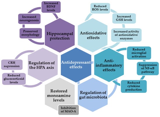- Zhou, N.; Gu, X.; Zhuang, T.; Xu, Y.; Yang, L.; Zhou, M. Gut Microbiota: A Pivotal Hub for Polyphenols as Antidepressants. J. Agric. Food Chem. 2020, 68, 6007–6020. [Google Scholar] [CrossRef]