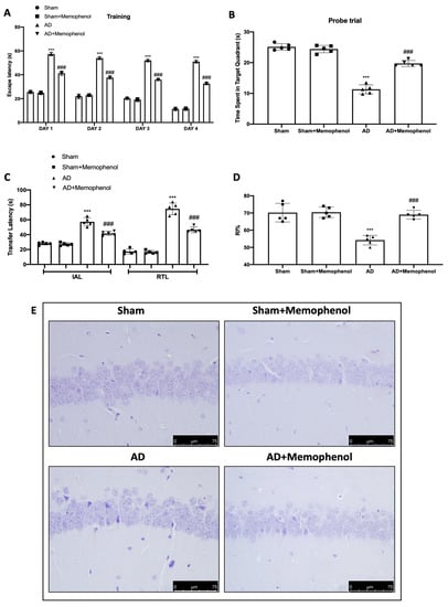 2.1. Effects of MemophenolTM on Behavioral and Histological Alterations