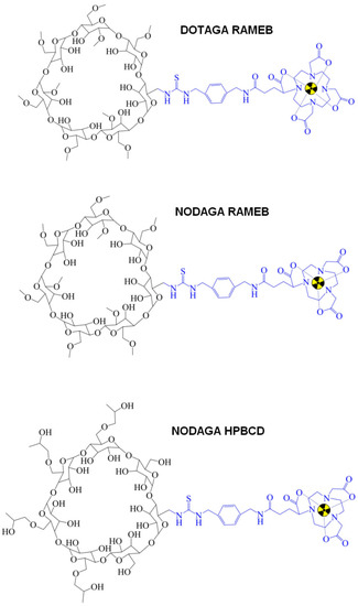 - Hajdu, I.; Angyal, J.; Szikra, D.; Kertész, I.; Malanga, M.; Fenyvesi, É.; Szente, L.; Vecsernyés, M.; Bácskay, I.; Váradi, J.; et al. Radiochemical synthesis and preclinical evaluation of 68Ga-labeled NODAGA-hydroxypropyl-beta-cyclodextrin (68Ga-NODAGA-HPBCD). Eur. J. Pharm. Sci. 2019, 128, 202–208. [Google Scholar] [CrossRef]