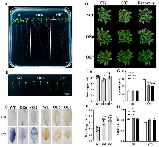 2.4. Overexpression of EjFAD8 Enhances Low-Temperature Tolerance in Arabidopsis