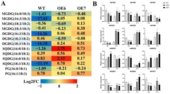 2.6. FAD8-Related Lipids Are Increased in Transgenic Arabidopsis under Low-Temperature Stress