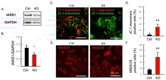 2.4. Downregulation of IARS1 Induces Mitochondrial Dysfunction in HepG2 Cells