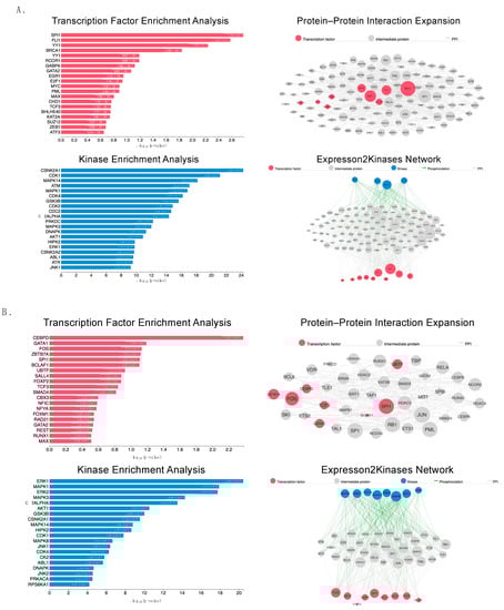 - Clarke, D.J.; Kuleshov, M.V.; Schilder, B.M.; Torre, D.; Duffy, M.E.; Keenan, A.B.; Lachmann, A.; Feldmann, A.S.; Gundersen, G.W.; Silverstein, M.C.; et al. eXpression2Kinases (X2K) Web: Linking expression signatures to upstream cell signaling networks. Nucleic. Acids Res. 2018, 46, W171–W179. [Google Scholar] [CrossRef]