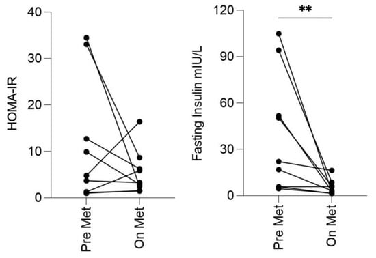 | Pre-Metformin (n = 9) | On Metformin (n = 9) | p-Value | |