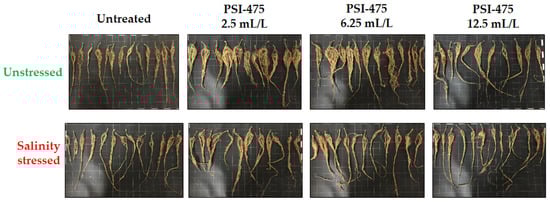 | Salinity stressed × PSI-475 2.5 | 14.37 | 121.27 | 9.14 | 11.04 |