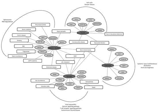 - Staley, J.R.; Blackshaw, J.; Kamat, M.A.; Ellis, S.; Surendran, P.; Sun, B.B.; Paul, D.S.; Freitag, D.; Burgess, S.; Danesh, J.; et al. PhenoScanner: A database of human genotype-phenotype associations. Bioinformatics 2016, 32, 3207–3209. [Google Scholar] [CrossRef] [PubMed]
