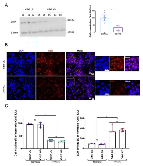 2.1. Inhibition or Genetic Deletion of Cdk7 Does Not Improve the Survival of Primary Cortical Neurons Exposed to OGD