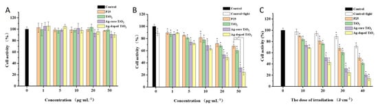 2.3. Comparative Analysis of the Cytotoxicity Assay and Phototoxicity of Ag-Modified TiO2 with Different Structures