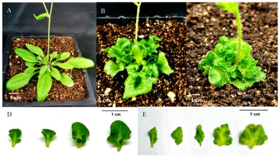 - Ikezaki, M.; Kojima, M.; Sakakibara, H.; Kojima, S.; Ueno, Y.; Machida, C.; Machida, Y. Genetic Networks Regulated by ASYMMETRIC LEAVES1 (AS1) and AS2 in Leaf Development in Arabidopsis Thaliana: KNOX Genes Control Five Morphological Events. Plant J. 2010, 61, 70–82. [Google Scholar] [CrossRef] [PubMed]