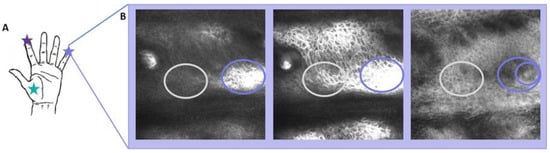- Herrmann, D.N.; Boger, J.N.; Jansen, C.; Alessi-Fox, C. In vivo confocal microscopy of Meissner corpuscles as a measure of sensory neuropathy. Neurology 2007, 69, 2121–2127. [Google Scholar] [CrossRef] [PubMed]