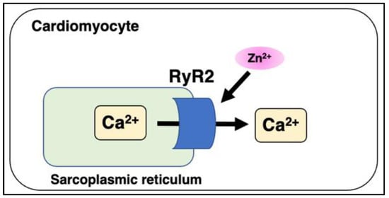 - Reilly-O’Donnell, B.; Robertson, G.B.; Karumbi, A.; McIntyre, C.; Bal, W.; Nishi, M.; Takeshima, H.; Stewart, A.J.; Pitt, S.J. Dysregulated Zn2+ homeostasis impairs cardiac type-2 ryanodine receptor and mitsugumin 23 functions, leading to sarcoplasmic reticulum Ca2+ leakage. J. Biol. Chem. 2017, 292, 13361–13373. [Google Scholar] [CrossRef]