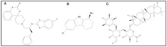 The structure of compounds regulating zinc transporters. (A) A ZIP7 inhibitor (NVS-ZP7-4) regulates ER zinc levels and Notch signaling (IC50 = 0.13 μM). (B) A ZIP8 inhibitor regulates intracellular zinc level (IC50 = 17.2 μM). (C) Soyasaponin Bb, extracted from soybeans, increased ZIP4 expression.
