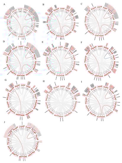 - Wang, Y.; Tang, H.; Debarry, J.D.; Tan, X.; Li, J.; Wang, X.; Lee, T.; Jin, H.; Marler, B.; Guo, H.; et al. MCScanX: A Toolkit for Detection and Evolutionary Analysis of Gene Synteny and Collinearity. Nucleic Acids Res. 2012, 40, e49. [Google Scholar] [CrossRef]