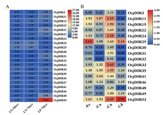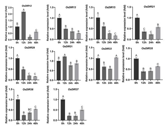 2.5. Experimental Examinations of the Expression Dynamics of OsjDIR Genes