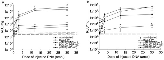 - Wenlong, L.; Leilei, Y.; Wei, F.; Yi, C.; Jing, T.; Lanzhi, M.; Bing, L.; Yang, L.; Shaoxia, W.; Qiuxia, F.; et al. Luciferase expression is driven by the promoter of fibroblast activation protein-α in murine pulmonary fibrosis. Biotechnol. Lett. 2015, 37, 1757–1763. [Google Scholar] [CrossRef]
