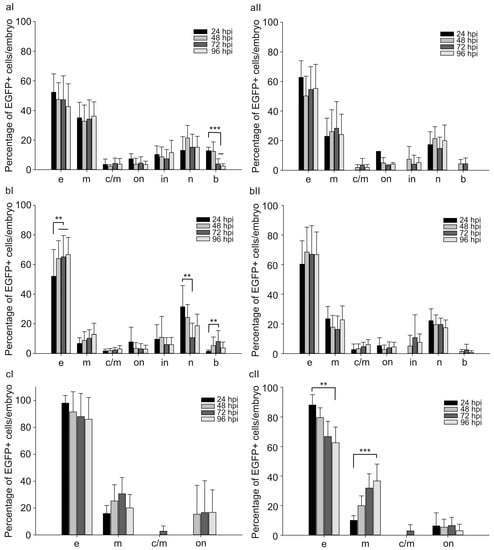4.6. Detection of EGFP-Positive Cells in Developing Zebrafish Embryo and Bioimaging