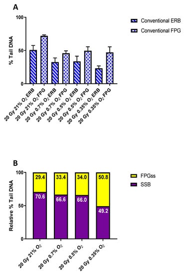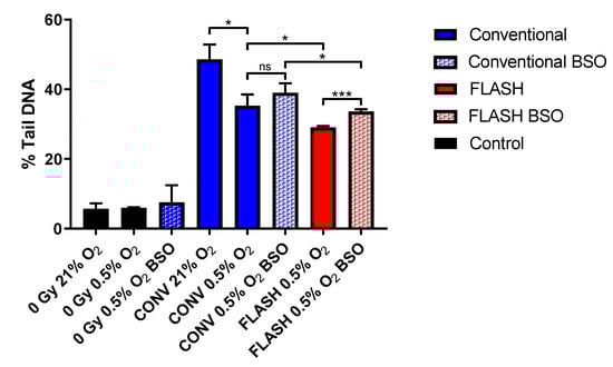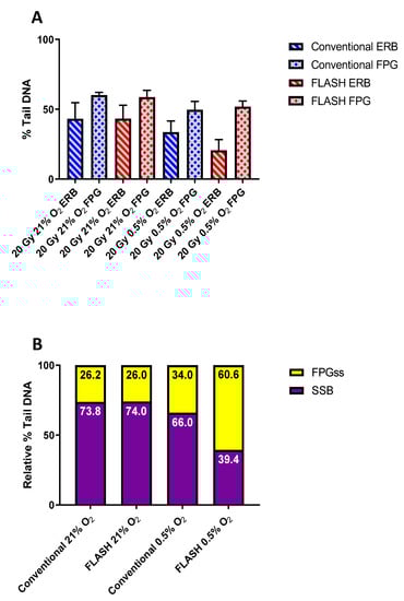 2.2. Comet Assay Assessment of FLASH-Induced Base vs. Strand Break Damage as a Possible Marker of Transient Oxygen Depletion