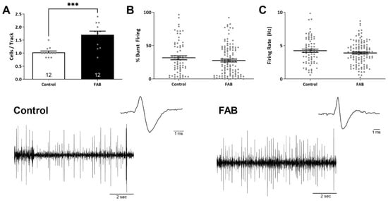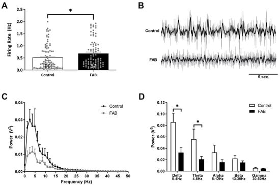2.1. Firing Rates of Putative Pyramidal Neurons in the vHipp Were Increased, While Coordinated Neuronal Activity Was Significantly Decreased in FAB Rats