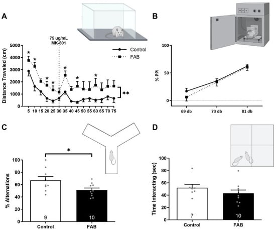2.3. FAB Rats Displayed Augmented Locomotor Activity and Deficits in Working Memory