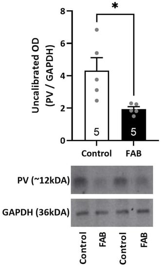 2.4. FAB Rats Exhibited a Significant Decrease in Parvalbumin Protein in the Ventral Hippocampus